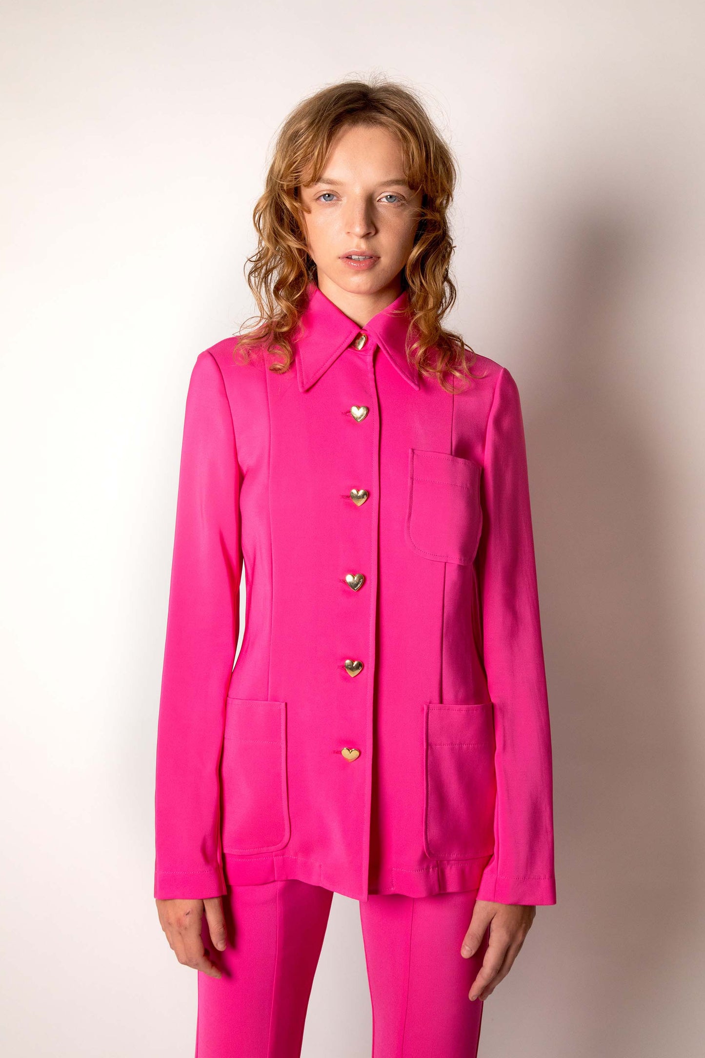 Giacca sfoderata in viscosa con bottoni a cuore dorati e dettaglio tasche sul davanti.
